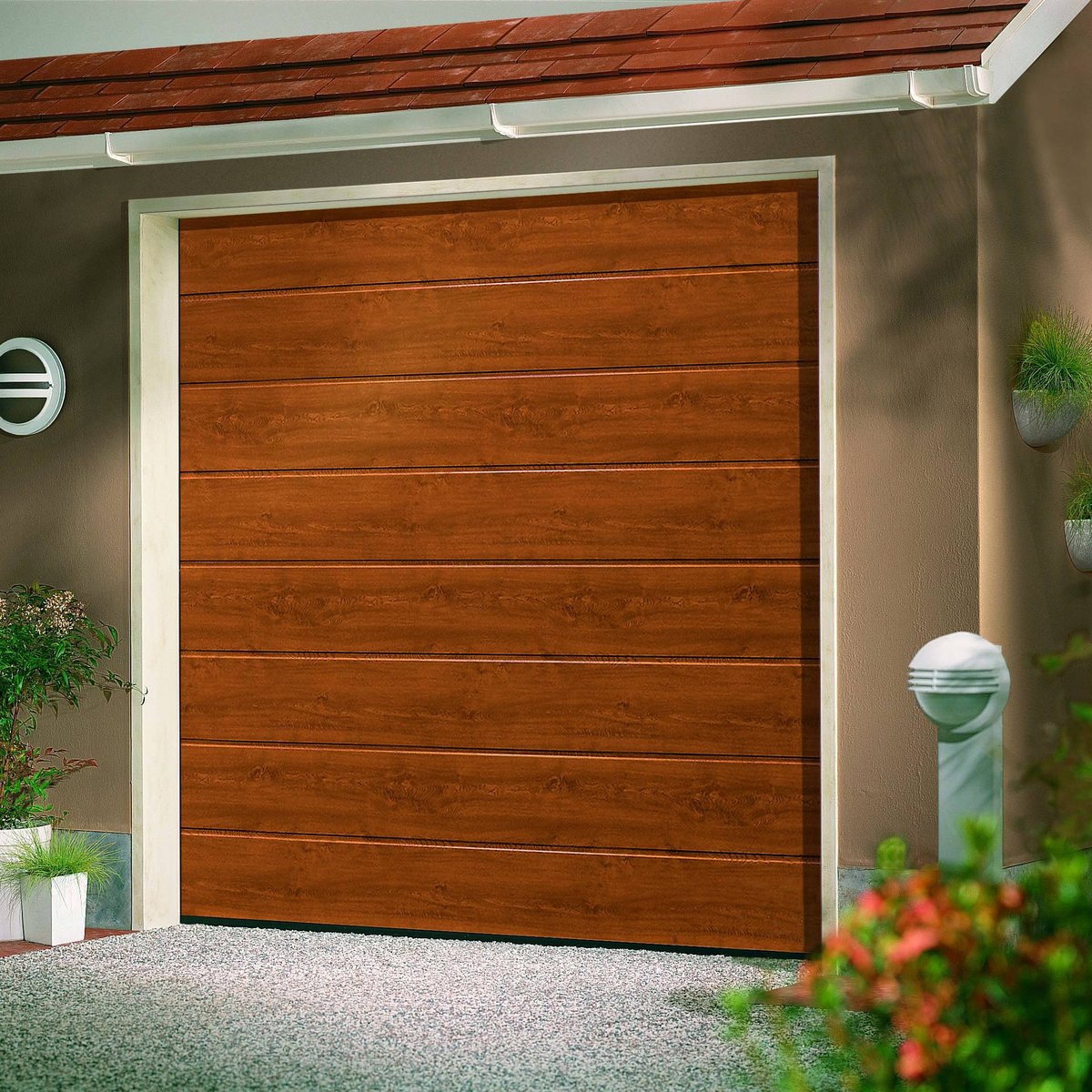 Upgrade your home with a Crystal® sectional garage door, combining style, functionality, and security in one elegant package.